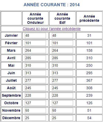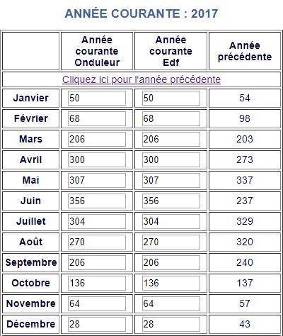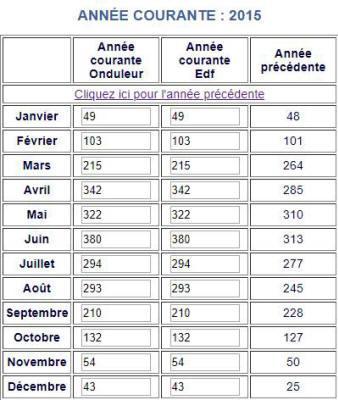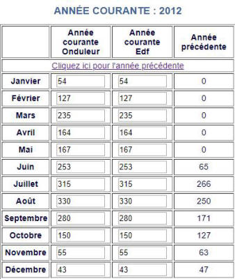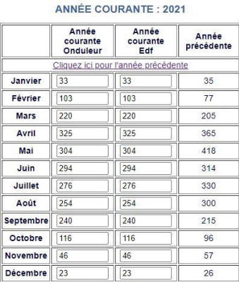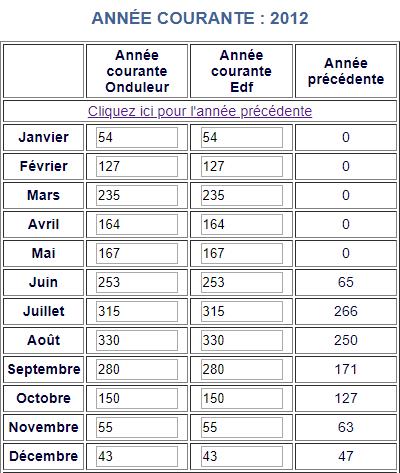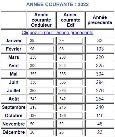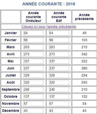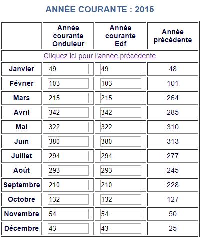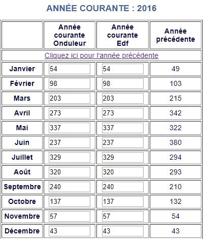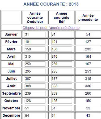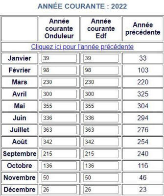 Voici les relevés Annuels de ma production photovoltaïque en KW