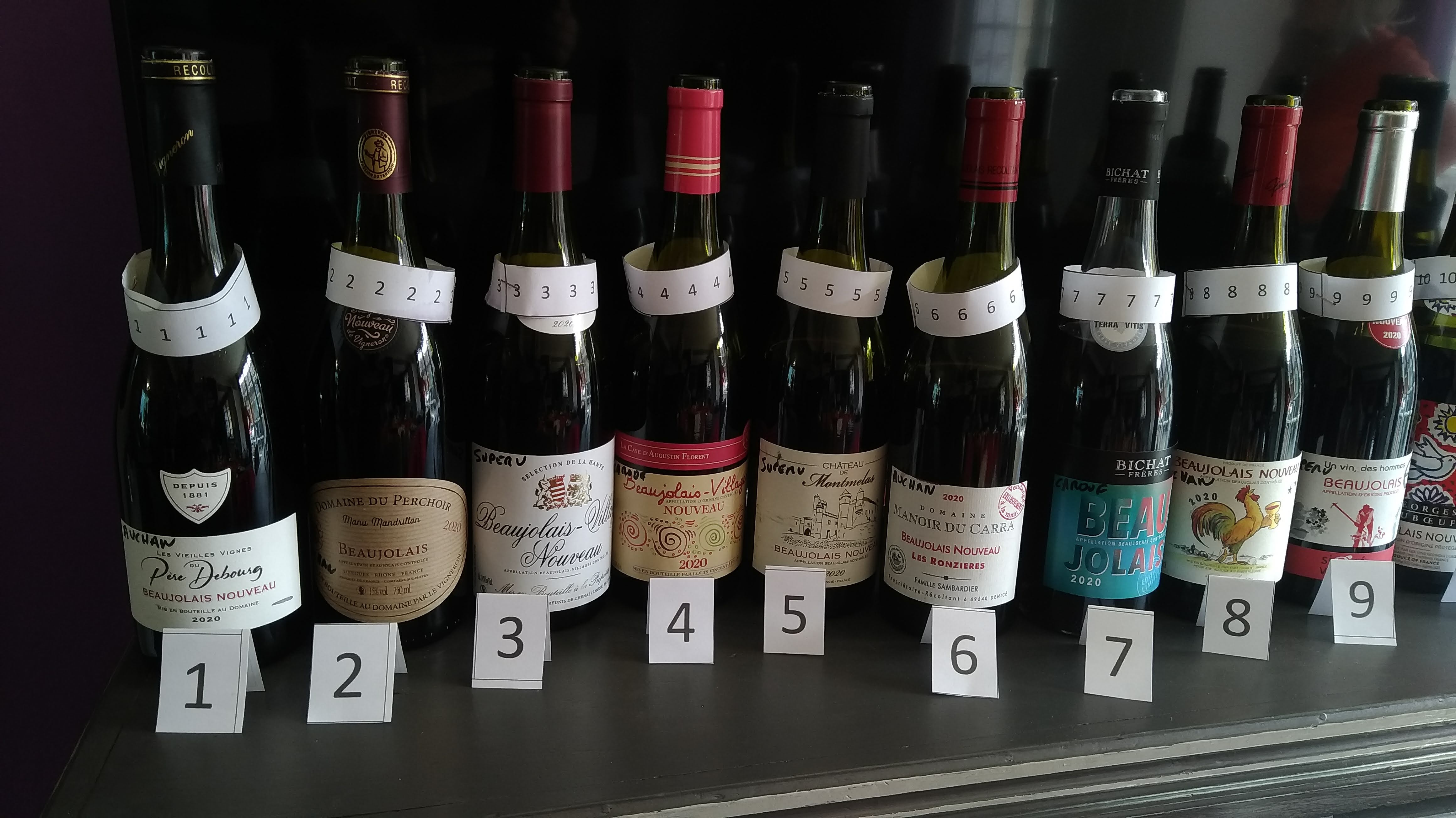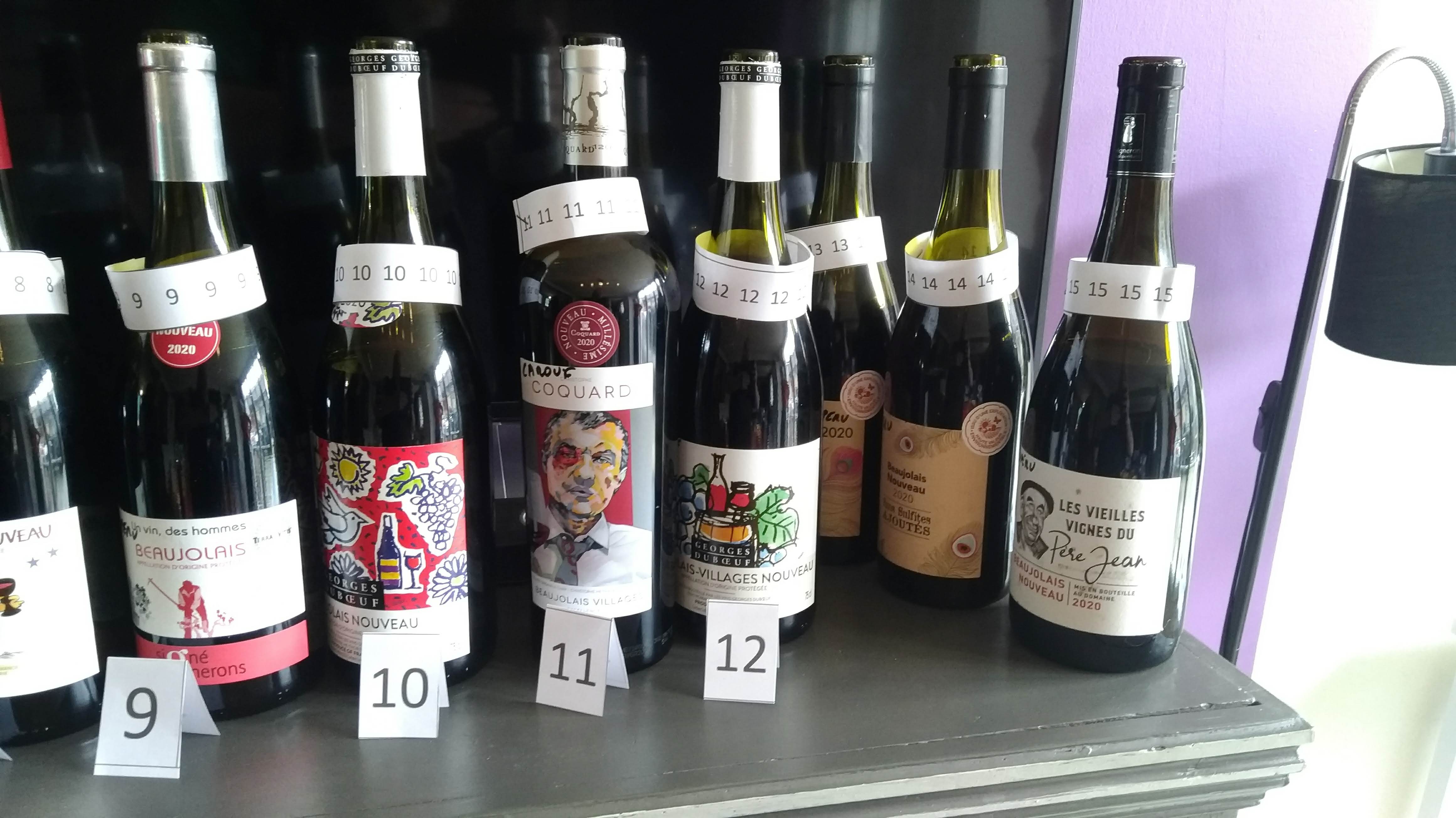 c'est réunit pour classer pas moins de 12 bouteilles de Beaujolais 2020 Voici quelques photos